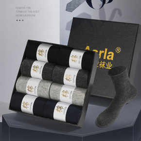 8双盒装男士袜子硬盒纯色商务中筒吸汗长袜秋冬款棉袜...