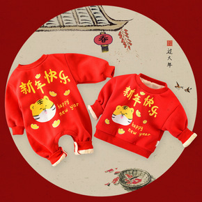 2021冬季新款韩版婴幼儿男女宝新年拜年服加厚保暖...