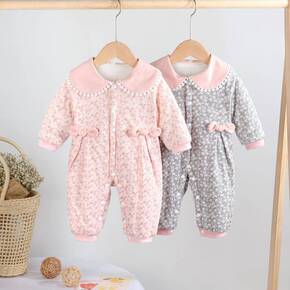 加棉连体衣婴儿女冬季公主春秋儿夹棉保暖初生宝宝衣服...