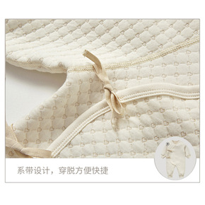 新生婴儿系带连体衣天然彩棉秋冬斜襟棉长爬初生宝宝夹...