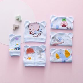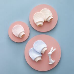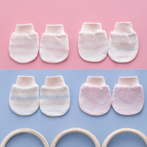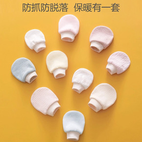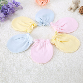 定制针织防抓脸素色手套宝宝棉质可爱护手套新生婴儿印...