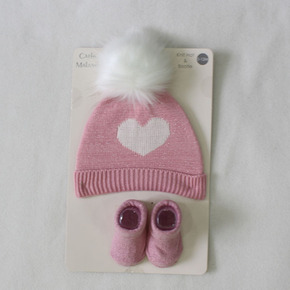 厂家加工定制宝宝用品爱心针织婴儿帽子配袜子 新生儿...