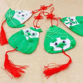 端午节木质粘土粽子挂饰益智创意幼儿园儿童玩具手工d...