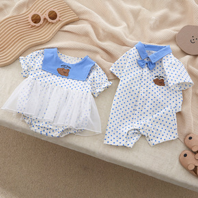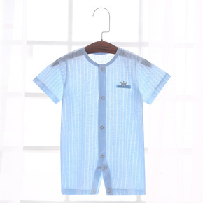 定制宝宝薄款连体哈衣婴儿舒适单色短袖哈衣夏季中式彩...