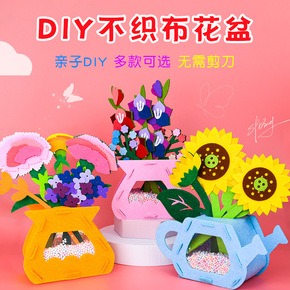 幼儿园亲子活动手工礼物儿童diy制作不织布盆栽花束...