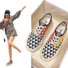 2022春季新款溶解鞋厚底休闲鞋帆布鞋黑白菱格运动...