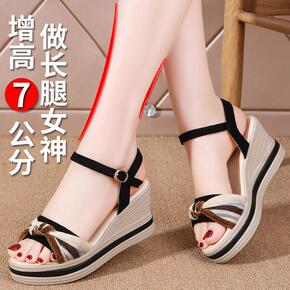 2020款时尚水钻高跟坡跟凉拖鞋女松糕厚底拖鞋大码...