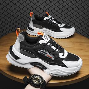 新款运动老爹帆布潮鞋男鞋子百搭休闲春秋季男士透气网...