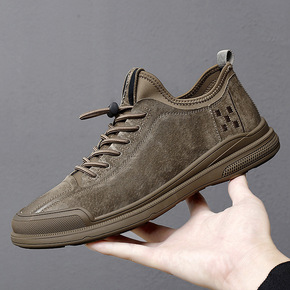 牛筋底伐木鞋牛皮男鞋不系带工装鞋低帮男士休闲鞋无鞋...