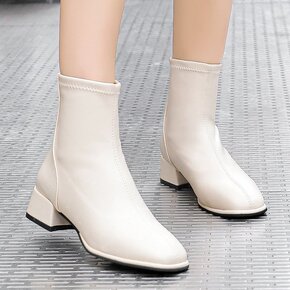 chic 巨好看!“耐看”后拉链短靴女韩版气质米白...