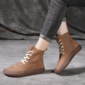 旅途 2022春夏新款头层牛皮休闲女鞋方头侧拉链平...