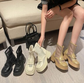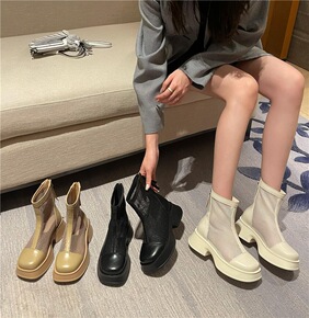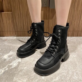 2022年秋新款网靴马丁靴方头松糕厚底女靴单靴平底...