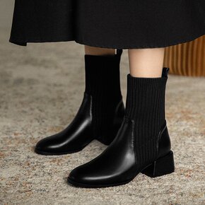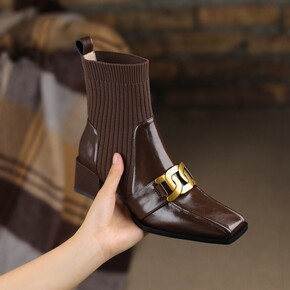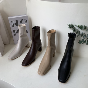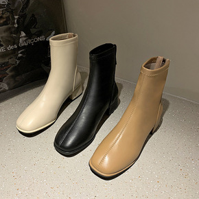 韩版短筒靴瘦瘦靴针织袜靴2022秋冬新款简约方头粗...