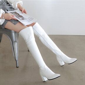 英魅尔浅口秋冬时尚风圆头台粗高跟性感女侧拉链白色中...