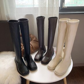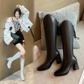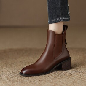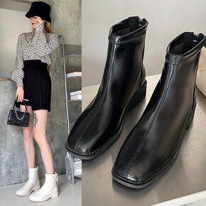 梅义狼2022秋冬季新款头层牛皮方头圆头时装靴低跟...