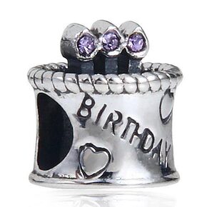 925纯银珠 紫罗兰奥钻点蜡烛生日蛋糕心形图案 b...