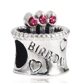 925纯银珠子 紫红奥钻点蜡烛生日蛋糕心形图案 b...
