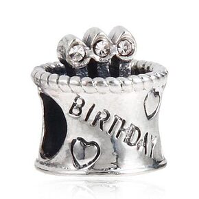 925纯银珠子 白色奥钻点蜡烛生日蛋糕心形图案 b...