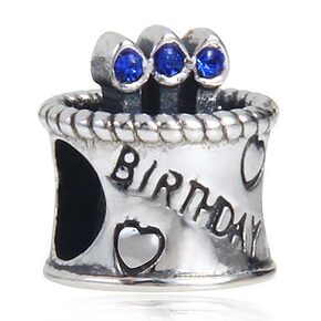 925纯银珠子 深蓝奥钻点蜡烛生日蛋糕心形图案 b...