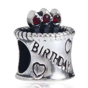 925纯银珠 深红奥钻点蜡烛生日蛋糕心形图案 bi...