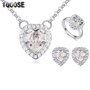 欧美时尚心形饰品套装千色采用奥地利元素项链耳环戒指...