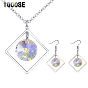跨境热卖饰品施家元素奥地利镀金水晶首饰套装简约几何...