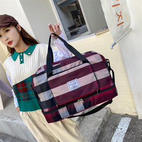 韩版格子牛津布大容量折叠单肩手提收纳包多功能拉杆户...