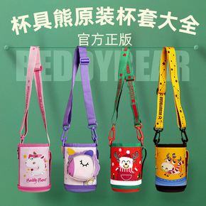 杯具熊儿童保温杯杯套学生水杯斜跨毛绒袋子通用保护套...