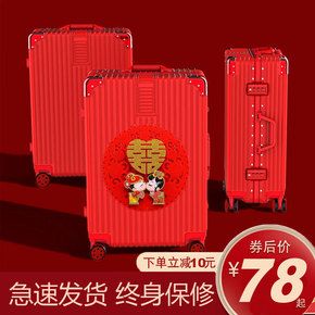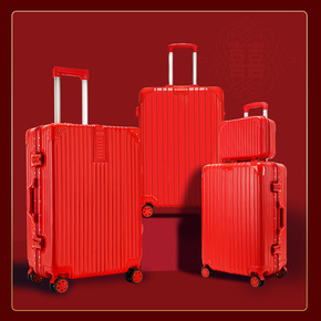 结婚行李箱陪嫁箱红色子母拉杆箱女密码皮箱子婚礼用新...