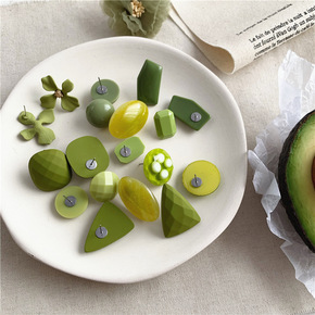 日韩网红牛油果色耳环复古清新绿色耳钉亚克力耳饰女树...