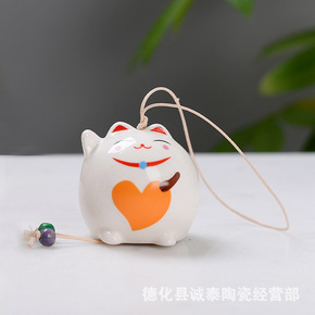 日式陶瓷风铃挂饰批发小兔子风铃工艺品日式猫咪挂件旅...