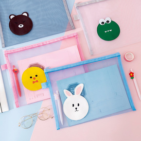 A4透明网纱文件袋多功能办公资料文件夹学生卡通拉链...