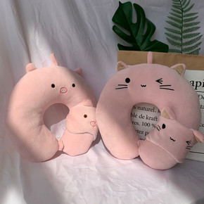 卡通u型枕头带眼罩U形护颈枕办公室午睡枕脖枕颈椎枕...