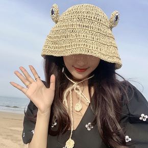 草帽女夏季海边 新款沙滩出游学生百搭遮阳透气青蛙i...