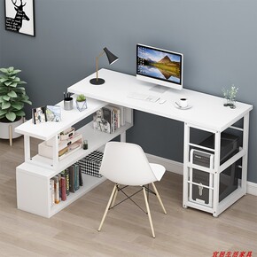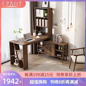 艺格森活全实木书桌卧室书房带书架转角电脑组合写字桌...