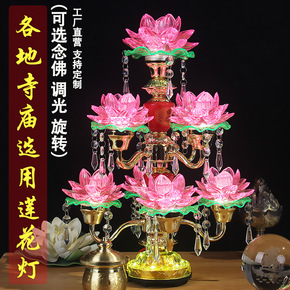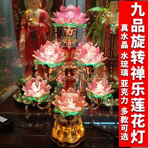 LED七彩九品水晶旋转念佛莲花灯佛供灯家用佛前荷花...