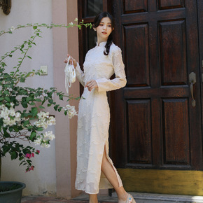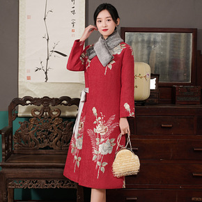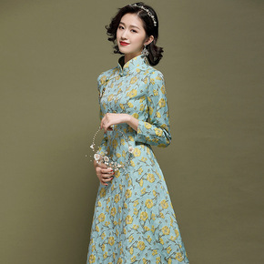 中国风2021秋季新款女装复古提花改良显瘦中长款旗...
