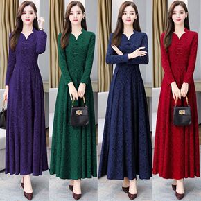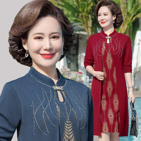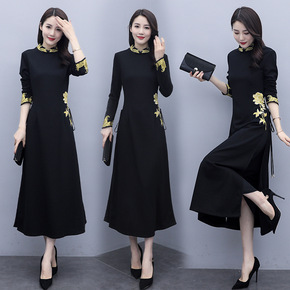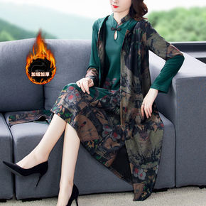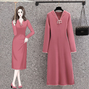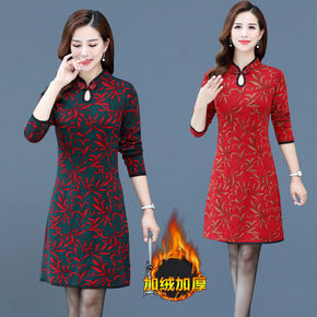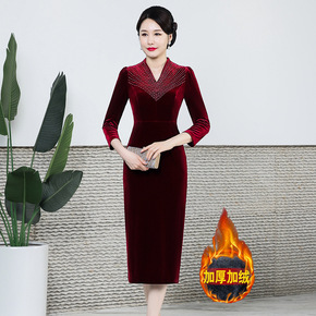 秋冬款女装加绒加厚旗袍女长袖连衣裙套装洋气中长款妈...