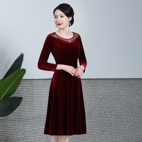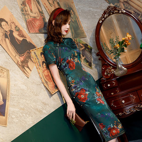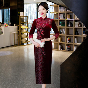 2021秋季新款丝绒旗袍改良复古敬酒中老年妈妈装长...