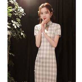 红眸2021春夏新款冰丝旗袍连衣裙三分袖中长改良侧...