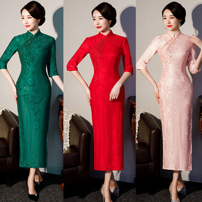 喜婆婆婚宴装旗袍礼服金丝绒刺绣改良连衣裙高贵洋气加...