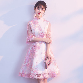 冬季改良短旗袍敬酒服加厚保暖复古绣花毛毛领时尚日常...