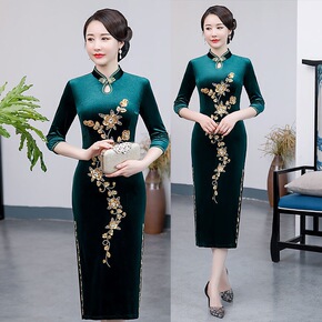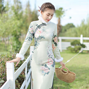 秋冬旗袍夹棉高档旗袍冬款加厚改良旗袍遮肚气质复古中...