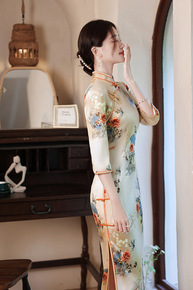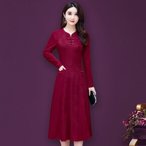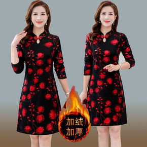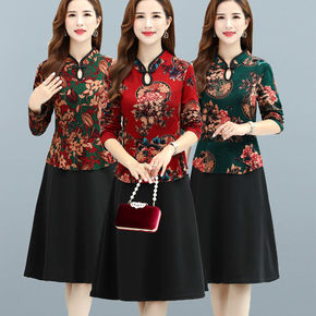 中老年女装秋装改良旗袍连衣裙中长款40岁50中年妈...