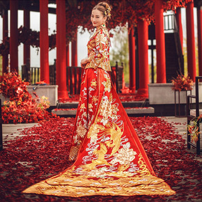 拖尾秀禾服新娘2021新款中式婚纱礼服结婚敬酒服出...