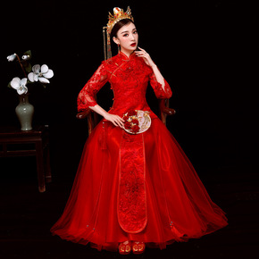 秀禾服小个子新娘敬酒服修身结婚旗袍礼服新款中式新娘...