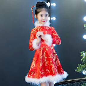 新款儿童中国风公主连衣旗袍唐装加厚冬季女孩新年童装...