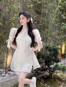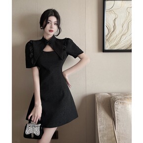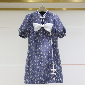 2022春夏新品蝴蝶结水滴领改良中国风旗袍收腰气质...
