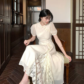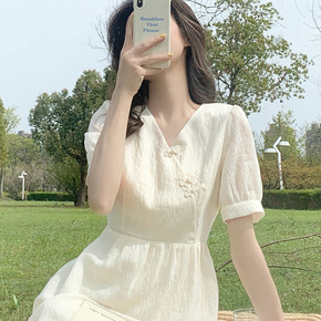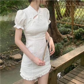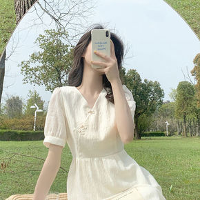 新中式国风女装改良旗袍2022新款高ji感气质白色...