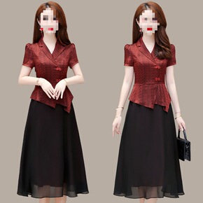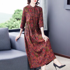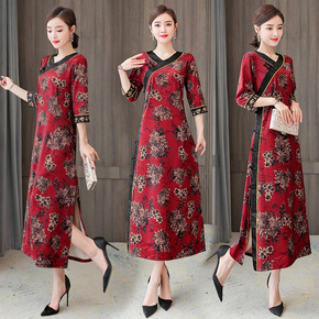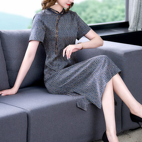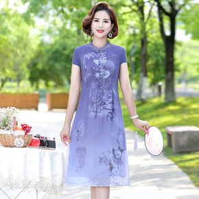 复古旗袍改良版假两件连衣裙女夏天新款妈妈装遮肉显瘦...